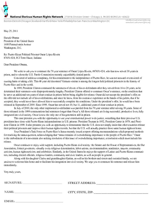 New Oscar Lopez Rivera Clemency Letter